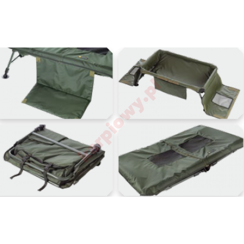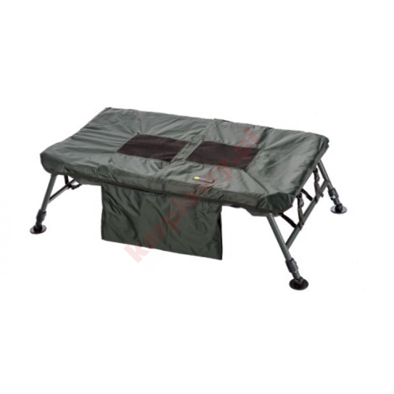Bezkompromisowe rozwiązanie w trosce o karpie. Ta przestronna kołyska z ramą z rurek i czterema teleskopowymi nogami zapewnia bezpieczne obchodzenie się i odhaczanie zdobyczy na każdym terenie. Pomysłowa dwuczęściowa pokrywa pozwala z jednej strony na całkowite zamknięcie kołyski, a z drugiej na dolewanie wody poprzez gumową siatkę. Woda może uchodzić przez dwa otwory zabezpieczone siatką, po jednym na każdym boku. Ponadto, w zestawie znajduje się mata do klęczenia. Niewątpliwą zaletą tej kołyski jest również jej niewielki rozmiar po złożeniu.