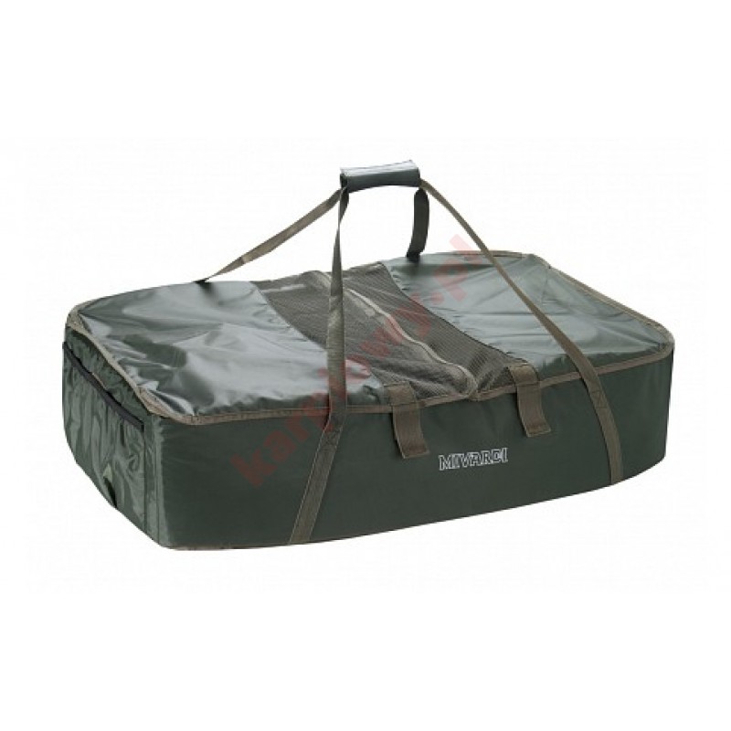 Duża i doskonale wyściełana mata odhaczająca z dodatkowym podparciem klęczącym i wodoodpornym materiałem przyjaznym dla ryb. Pokrywa siatkowa może być całkowicie lub częściowo zamocowana za pomocą pasków na rzepy.