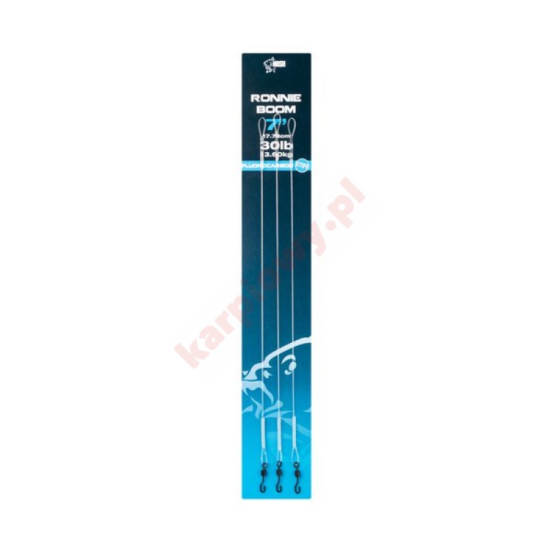 Odporny na skręcanie, ekstremalnie wytrzymały odcinek gotowego Fluorocarbonu zapewniający perfekcyjną prezentację przyponu Ronnie Rig, odrzuca przynętę od zestawu końcowego w celu zapewnienia optymalnego zassania przynęty na każdym rodzaju dna. Krętlik Ronnie Swivel umożliwia szybką wymianę haczyków za pomocą Tungsten Kickers bez konieczności użycia węzłów czy rurki termokurczliwej.