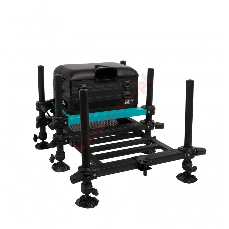 Siedzisko CX36 to niewiarygodnie kompaktowy i stabilny, wyczynowy kosz na sześciu regulowanych nogach o śr. 36mm. Wyposażony w szuflady boczne, gwinty w nogach, uchwyt na siatkę, poziomnicę i centralne mocowanie w tylnej części ramy na dodatkową półkę.