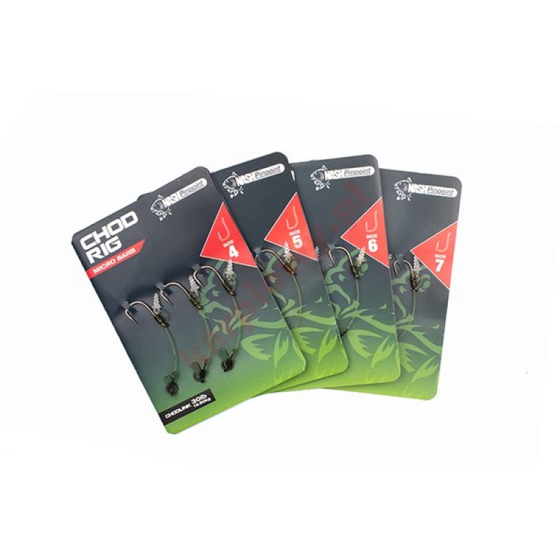 Precyzyjnie wyprofilowany chod rig zawiązany na haku Pinpoint Chod Twister. Przypon jest bardzo krótki, dzięki czemu przynęta unosi się blisko dna, nie wzbudzając w ten sposób podejrzeń karpi. Plastikowa wkrętka umożliwia błyskawiczną wymianę przynęty.