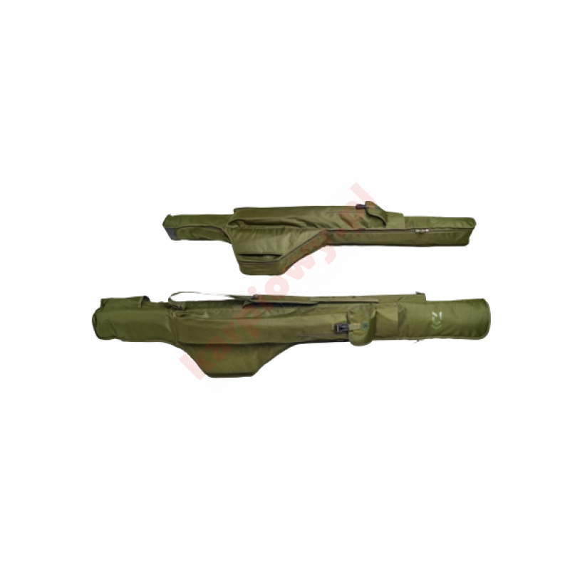 Te wysokiej jakości, wyściełane i bardzo wytrzymałe pokrowce mogą pomieścić do trzech uzbrojonych wędek. Pasują doskonale do wędek z przelotkami startowymi w rozmiarze 50. Z wyściełanymi przegrodami i paskiem na rzep dla optymalnej ochrony wędek. Z dodatkową kieszenią boczną na sprzęt, taki jak podpórki, sztyce itp. Dno z PVC zapobiega wnikaniu wilgoci. Obszyte, komfortowe uchwyty i pas na ramię. Materiał: poliester