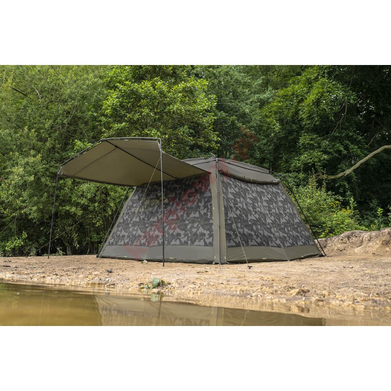 - Ganek/daszek namiotu z dodatkowymi wzmocnieniami, zapewniającymi wytrzymałość konstrukcji