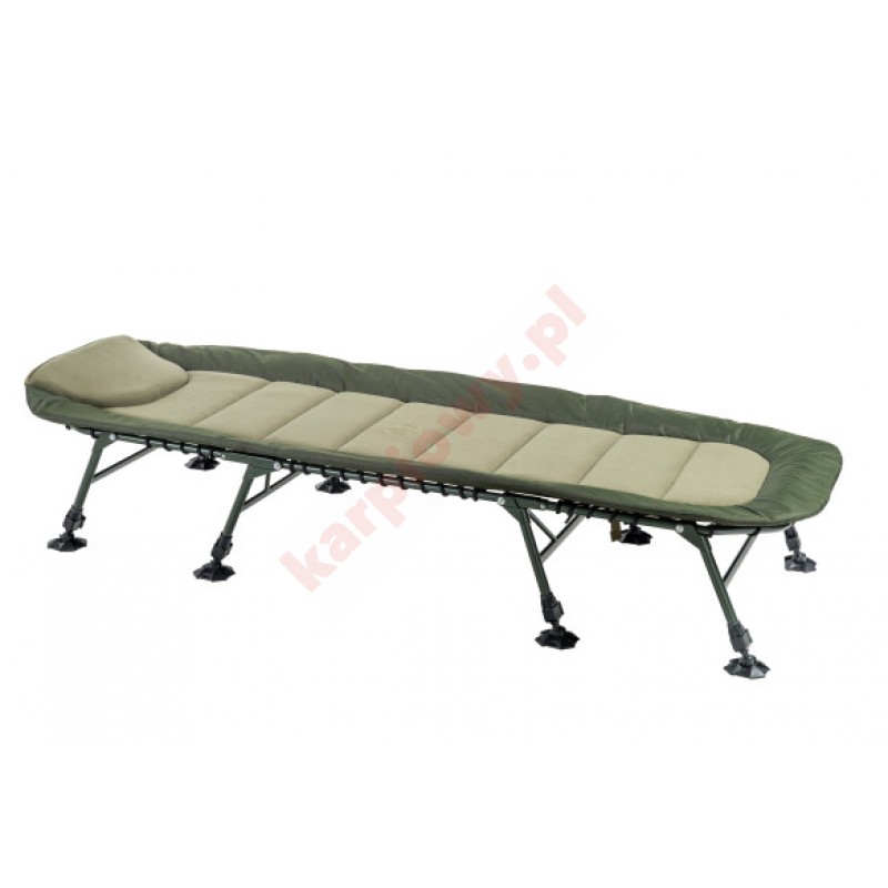 Duży, płaski i absolutnie wygodny fotel. Miękka poduszka i dobrze wyściełany materac z ciepłą osłoną z polaru zapewniają duży komfort nawet podczas dłuższych sesji. Krawędzie materaca pokryte są mocnym i zmywalnym materiałem B-POL 600D, który jest prawie niezniszczalny i zapewnia długą żywotność. Nogi są wyposażone w duże wahadłowe stopy błotne w ekskluzywnym designie Mivardi. Unikalnie zaprojektowane zamki na nogi zapewniają szybką i wygodną regulację nóg jednym dotknięciem i maksymalną niezawodność. Bardzo mocna rama pozwala na doskonałe napinanie materaca. Łóżko Comfort jest dostępne w wersji z sześcio- lub ośmioma nogawkami.