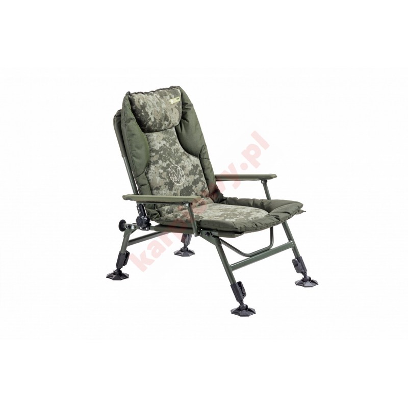 Wyjątkowo zaprojektowane i niezwykle lekkie krzesło wykonane z naszej nowej ultralekkiej ramy. Jest wyposażony w wygodny i gruby wyściełany materac w cyfrowym kamuflażu. Mocne podłokietniki z rękawami neoprenowymi zwiększają ogólną wytrzymałość krzesła i są bardzo wygodne. Z w pełni regulowanym oparciem, zamkami górnego poziomu na wysuwanych nogach i dużymi stopkami z błota, w połączeniu z zadziwiająco niską wagą i kompaktowymi rozmiarami transportowymi, jest to naprawdę wygodne krzesło do siedzenia przez długi czas.