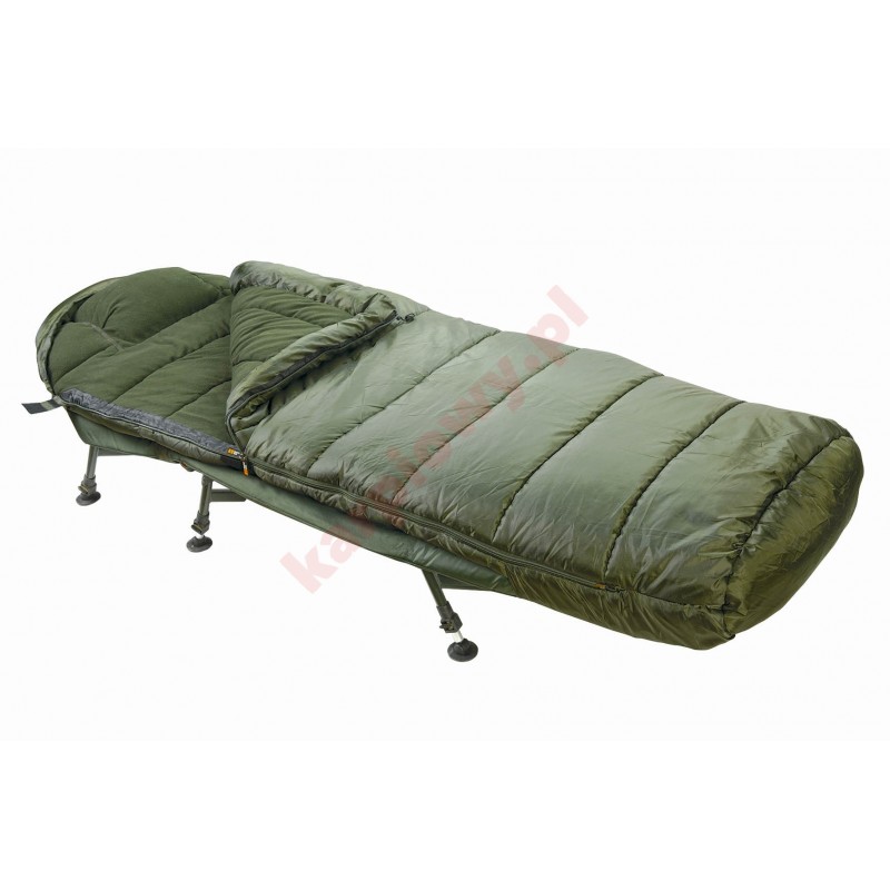 Śpiwór Enforcer 4 season plus Duży ciepły komfortowy śpiwór, odpowiedni na wędkowanie od wiosny do jesieni. Przeznaczony na nasze największe łóżka. Wyposażony w wyjmowaną poduszkę. Antypoślizgowy system, utrzymujący śpiwór stabilnie na łóżku, dwa kołnierze mocujące, taśma zapinana na klamrę i dodatkowy pas. Doszczelnienie dolnej części śpiwora.