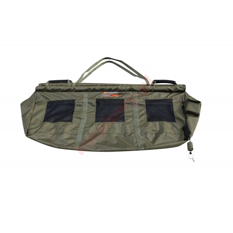 Duży rozmiar i poprzeczne dystanse, zapewniają bezpieczne przechowywanie dużych ryby. Błyskawiczny zamek z blokadą, przechodzi prawie przez całą torbę, przez co łatwo wypuścić rybę. Wyposażona w 3 metrową linkę z śrubą do wkręcenia w podpórkę, cztery uchwyty pozwalają pewnie chwycić torbę z rybą.