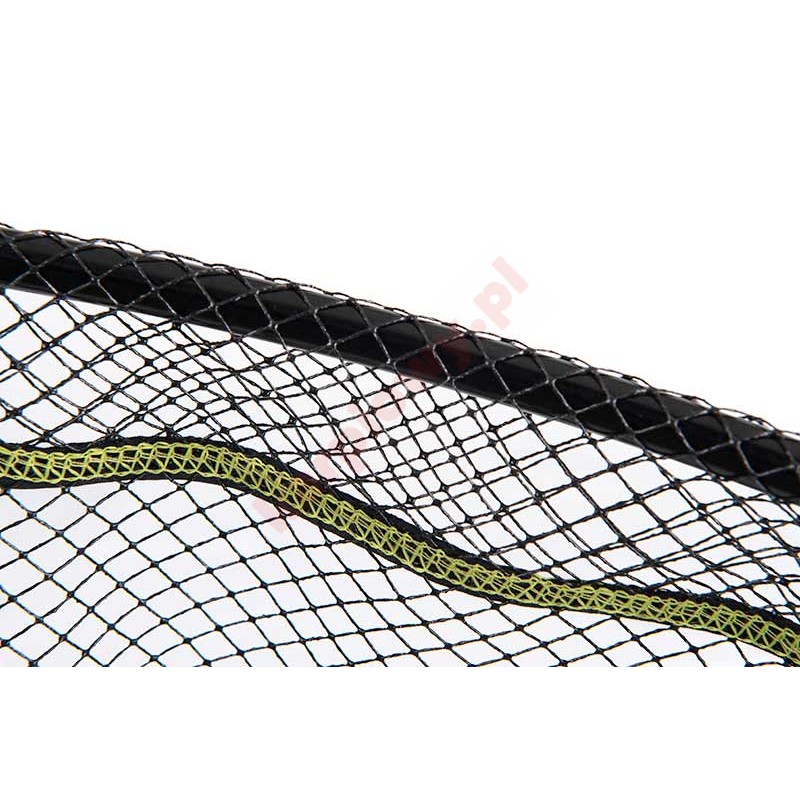 - Czarna, aluminiowa obręcz oraz siatka, które nie płoszą ryb