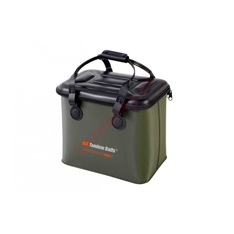 Niesamowicie wytrzymała torba. Została wykonana z 1,5 mm EVA, z wzmocnionym dnem i twardą pokrywą na zamek. Dolna część pojemnika w pełni wodoszczelna, a całość wodoodporna. Dzięki temu idealnie nadaje się do przechowywania przynęt. Super sprawdzi się także przy przenoszeniu lub przechowywaniu mokrych rzeczy, takich jak worki karpiowe, mokre ubrania, buty, sprzęt do zanęcania itp.