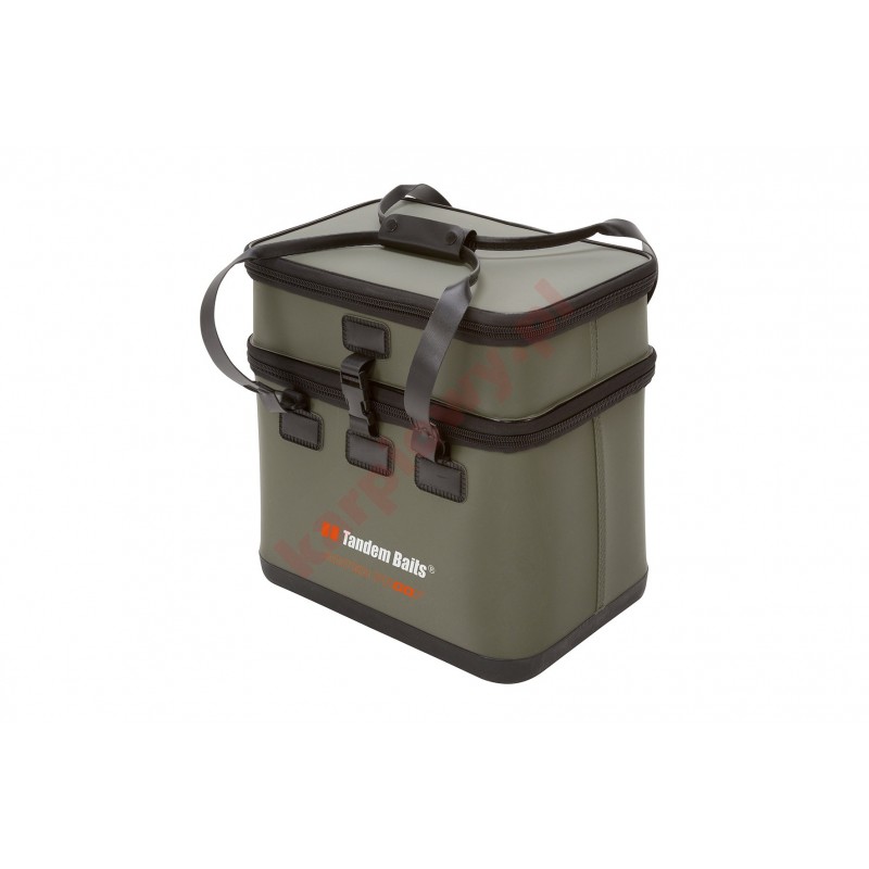 Niesamowicie wytrzymały, w pełni izolowany pojemnik na przynęty. Został wykonany z 1,5 mm EVA, z wzmocnionym dnem 3 mm i twardą pokrywą na zamek. Dolna część pojemnika w pełni wodoszczelna, całość wodoodporna. Dzięki temu idealnie nadaje się do przechowywania przynęt. Super sprawdzi się także przy przenoszeniu lub przechowywaniu mokrych rzeczy, takich jak worki karpiowe, mokre ubrania, buty, sprzęt do zanęcania itp.