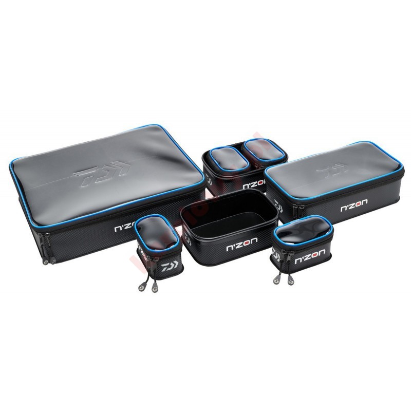 N‘Zon EVA System Set składa się z 8 części i zawiera różne pojemniki na przynęty, kosze zanętowe, obciążniki i dowolne dodatkowe akcesoria. Mniejsze pojemniki dobrze pasują do dużej torby, co ułatwia transport i przechowywanie. Sześć pojemników z przezroczystym deklem zamykanym na zamek błyskawiczny i dwa otwarte.