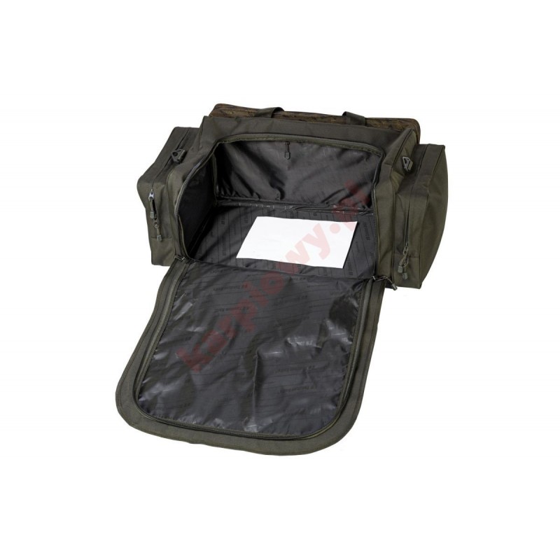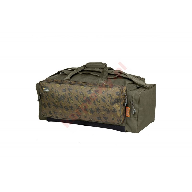 Torba wykonana z ciemnooliwkowego materiału z dodatkiem naszego autorskiego wzoru camo, idealne dla każdego karpiarza lubiącego stonowane kolory, zlewające się z otoczeniem.