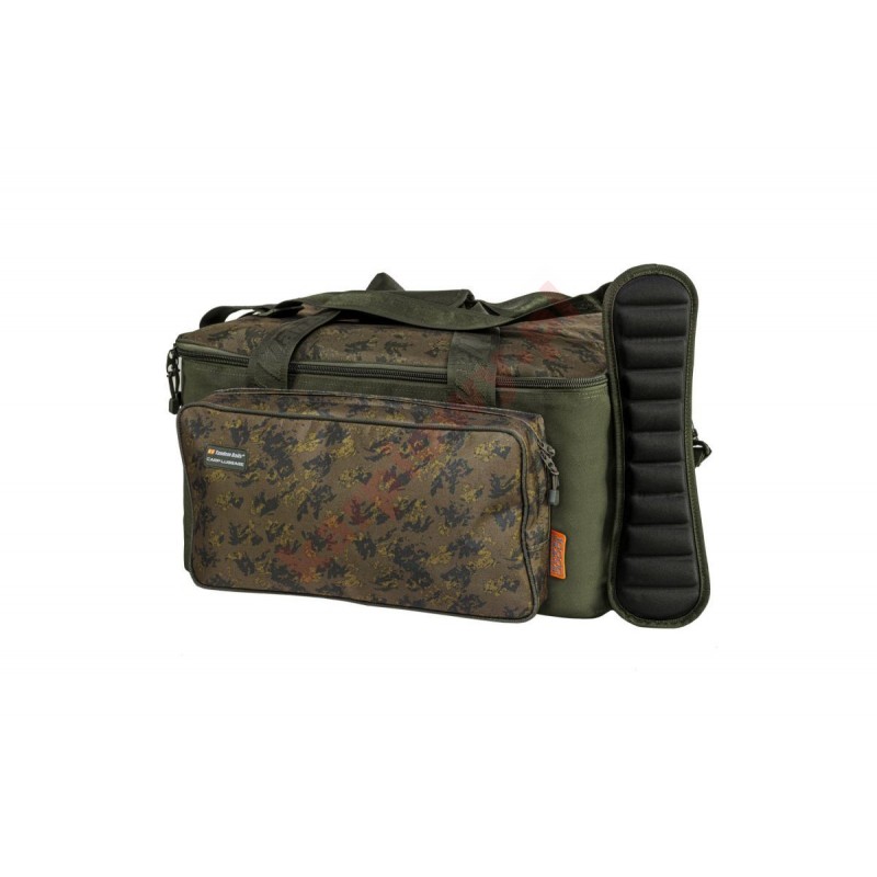 Torba wykonana z ciemnooliwkowego materiału z dodatkiem naszego autorskiego wzoru camo, idealna dla każdego karpiarza lubiącego stonowane kolory, zlewające się z otoczeniem.