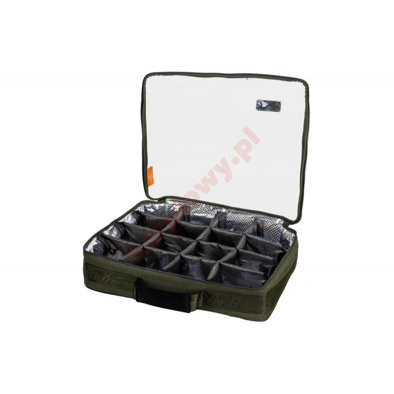 Torba zaprojektowana w taki sposób, by maksymalnie ułatwić dostęp do zawartości. Przedziałki zapobiegają obijaniu się i obsypywaniu się przynęt podczas transportu, a przezroczysta folia PCV jeszcze przed otwarciem pomaga w zlokalizowaniu Twojego ulubionego pudełka. Organizer wewnątrz został wyściełany materiałem termicznym, dzięki czemu możliwe jest zachowanie niższej temperatury w jego wnętrzu i utrzymanie w czystości.