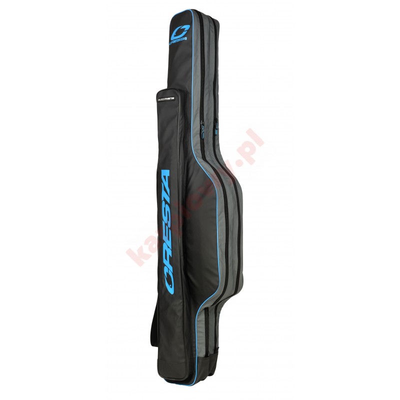 Luksusowe i bardzo mocno wyściełane pokrowce do przechowywania gotowych wędek rzutowych. Przestronne przegrody na wędki są zaprojektowane bez luźnych sznurków ani pasków w środku. Zostały one zastąpione przez dostarczone neoprenowe paski do wędek. Spłaszczony kształt komory na kołowrotek umożliwia przechowywanie kilku gotowych wędek w 1 komorze. Zewnętrzna kieszeń oferuje miejsce do przechowywania podpór, podpórek i innych długich akcesoriów. Wyposażony w luksusowy wyściełany pasek na ramię i wygodny uchwyt.