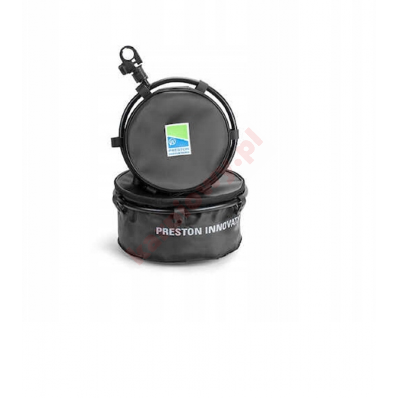 Wodoodporna miska na zanętę z pianki EVA ze sztywną obręczą do mocowania bezpośrednio do siedziska lub nóg platformy. Składany dla łatwego przechowywania i transportu.