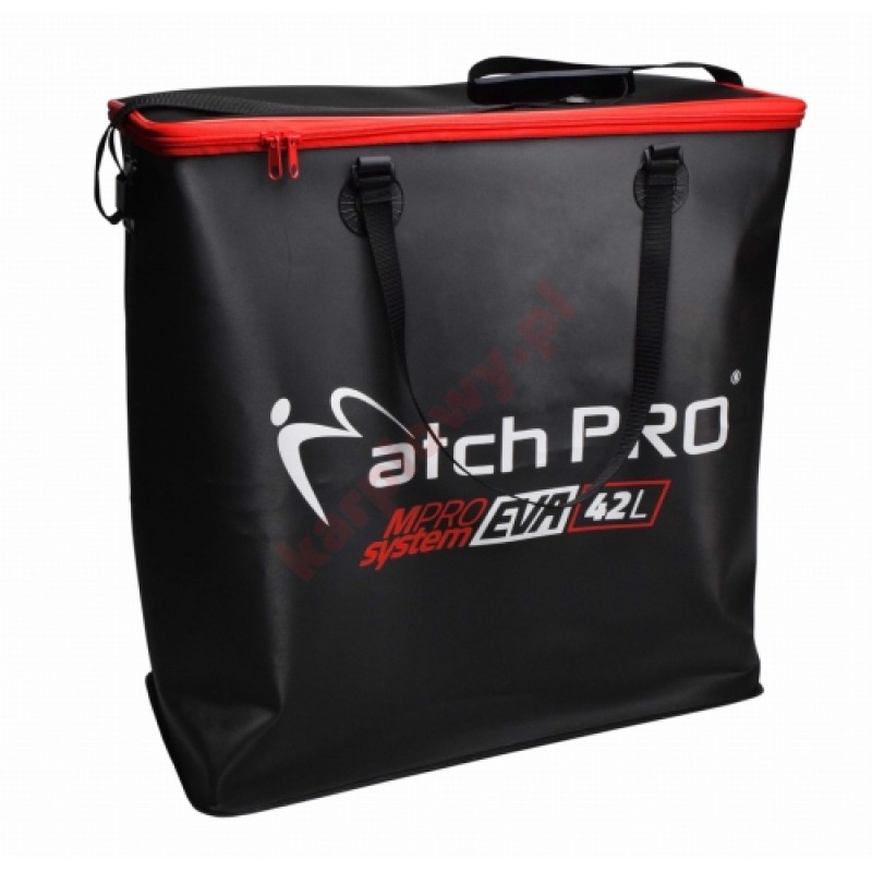 Specjalistyczna torba wędkarska zaprojektowana do przechowywania i transportu siatek wędkarskich oraz koszy do podbieraka. Z powodzeniem można transportować także sita, maty oraz inne akcesoria. Torba MPRO EVA 42 L pomieści bez problemu trzy siatki 4m. Zaprojektowany przez czołowych zawodników feederowych i spławikowych w Polsce. Torba wykonana jest z bardzo mocnego i w pełni wodoodpornego materiału EVA. Całość zamykana jest na wygodny w użyciu zamek oraz mocne uchwyty do przenoszenia. Wysoka jakość wykonania pozwala na długotrwałe i bezproblemowe użytkowanie. Niezwykle łatwy w czyszczeniu i transporcie.
