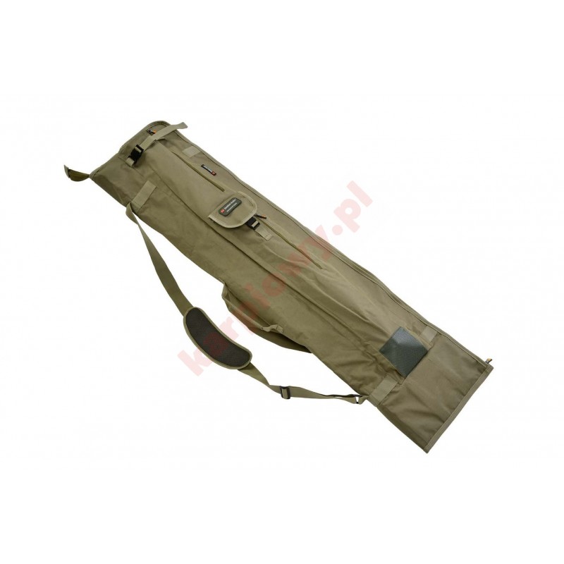 Pokrowiec na wędziska trzyskładowe. Mieści trzy uzbrojone wędziska i trzy nieuzbrojone. Dodatkowo posiada kieszeń na podpórki, podbierak itp.