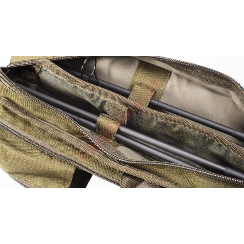 To pokrowiec dedykowany karpiarzom, dla których efektywne wykorzystanie czasu nad wodą jest priorytetem. Pozwoli na przenoszenie wędek uzbrojonych w kołowrotki typu Big Pit, które oddziela wyściełana przekładka.