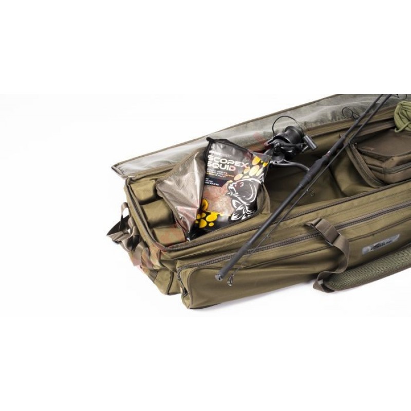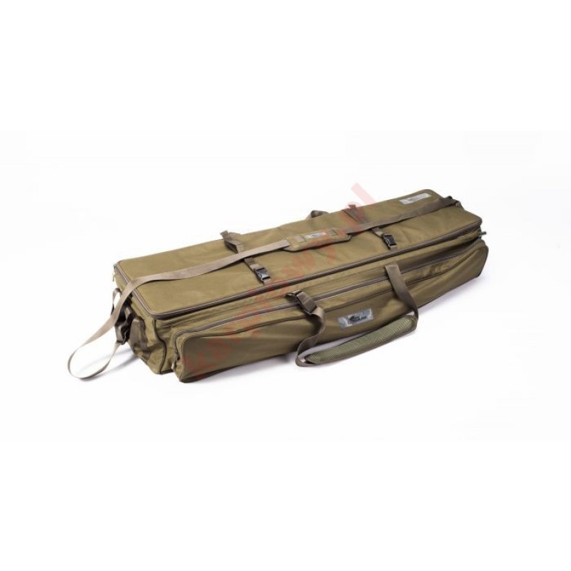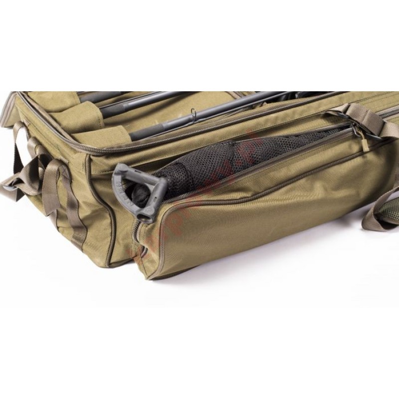 Uzbrojone wędziska są zabezpieczone przez specjalne kieszenie na dolniki oraz pętle zapinane na rzep, które stabilizują szczytówki. Miejsca jest wystarczająco dużo aby zmieścić największe kołowrotki, które, podobnie jak wędki, są zabezpieczone przed uszkodzeniami dzięki wyściełanej nakrywie.