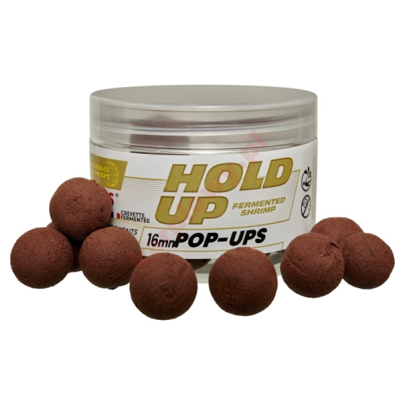 Przynęta Hold Up to mieszanka spożywczych i morskich składników, które karpie natychmiast rozpoznają jako źródło pożywienia. Te wysoce przyswajalne przynęty natychmiast zaczynają uwalniać atraktor do wody, który naśladuje elementy naturalnej diety karpia. Przynęty te są w 100% naturalne i sprawdzone podczas długich testów. Szczególnie fascynują się nimi większe , bardziej ostrożne ryby. Przynęty nadają się zarówno do krótkich sesji sportowych jak i dłuższych zasiadek i działają w każdej temperaturze wody.