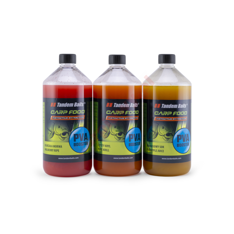 Carp Food PVA Booster to niezwykle lepki i gęsty atraktor, o intensywnym zapachu. Idealny do zalewania kulek, pelletu, ziaren oraz zanęt czy mixów. To także perfekcyjny produkt do stosowania z materiałami PVA.