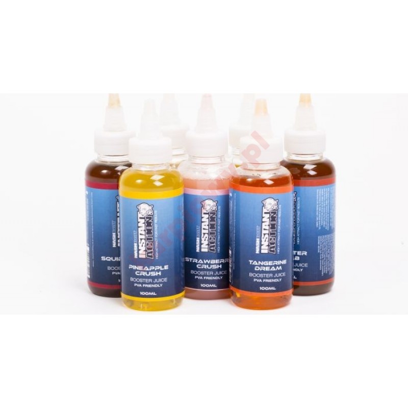 Boostery Instant Action Booster Juice są napakowane tymi samymi atraktorami i wzmacniaczami co kulki z serii Instant Action. Płyn dostępny jest w zwężanych buteleczkach, którymi z łatwością można wzbogacić worki i inne materiały PVA.