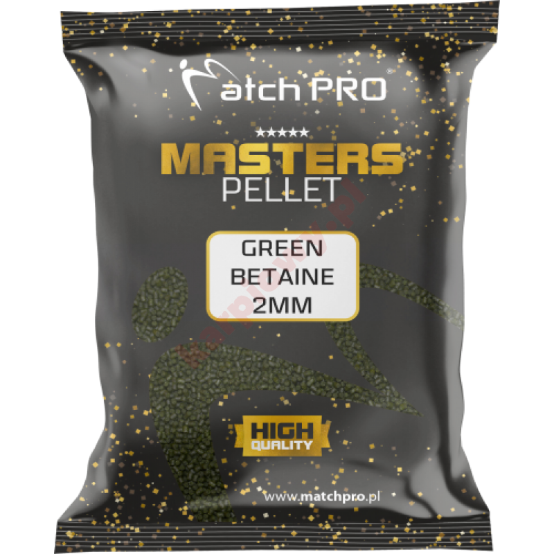 Najwyższej jakości pellet wysoce bogaty w mączkę rybną i olej rybny. Dodatkowo zawierają betainę i spirulinę. Zaskakujące rezultaty daje połączenie z pelletem red krill. Można go stosować zarówno jako dodatek do zanęt sypkich oraz do nęcenia bezpośredniego. Po nasączeniu wodą do 5min robi się miękki i idealnie nadaje się do tzw. methody. Stosując Green Betaine Masters można spodziewać się brań rekordowych linów, leszczy i karpi.