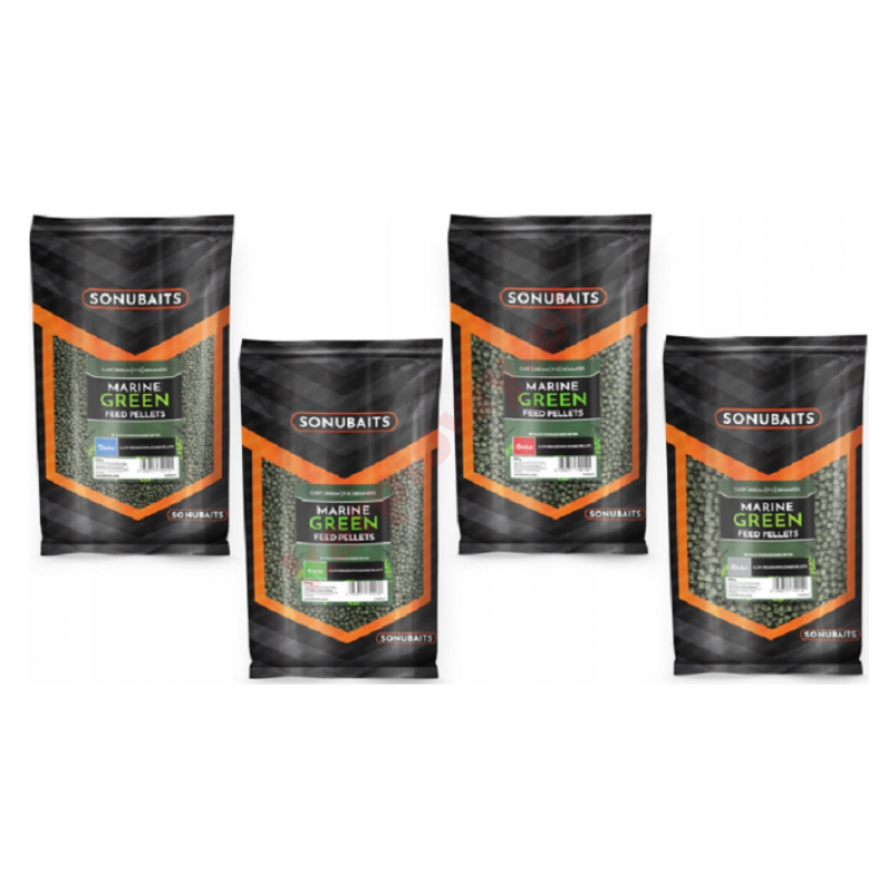 Pelety paszowe Marine Green zostały wprowadzone w rozmiarach 2 mm, 4 mm, 6 mm i 8 mm, aby uzupełnić naszą nową gamę produktów Marine Green, a także zaoferować wędkarzom zupełnie inną formę pelletu paszowego.