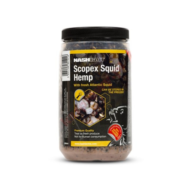 Najwyższej jakości, duże nasiona francuskiej konopi. Aromatyzowane naszym legendarnym zapachem Scopex No. 1 i mieszane z czystym wyciągiem ze Squida Atlantyckiego.