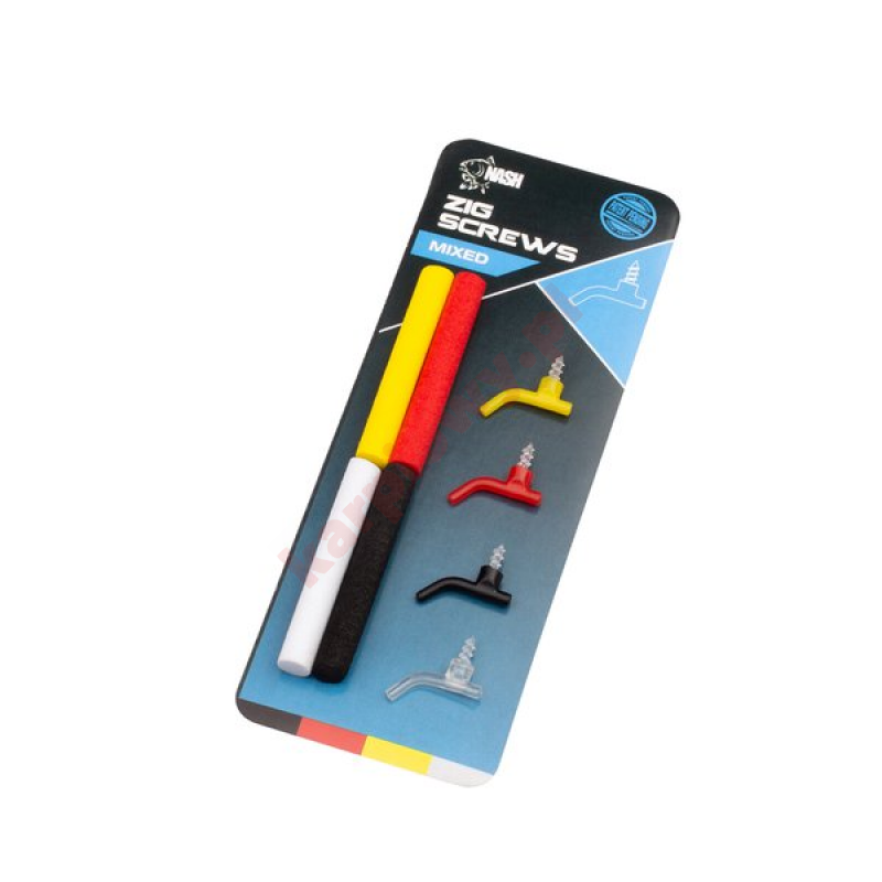 Specjalistyczne pozycjonery do zig riga ze zintegrowaną wkrętką, pozwalającą na błyskawiczny montaż przynęt z pianki, plastiku, korka, czy też kulek pływających bez konieczności użycia igły. Dostępne kolory: czarny, żółty, czerwony i przeźroczysty. Poza tym, że pozycjonery Zig Screws umożliwiają natychmiastową wymianę przynęty, dodatkowo poprawiają mechanikę działania przyponu, a także maskują hak. Dostępność zarówno jaskrawych jak i stonowanych kolorów pozwala na dostosowanie zestawu do warunków zastanych nad wodą. Wariant mixed zawiera wszystkie dostępne kolory. W każdym opakowaniu znajdują się pianki, które opowiadają kolorowi pozycjonerów. 4 sztuki w opakowaniu.