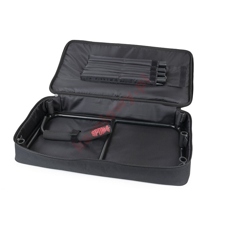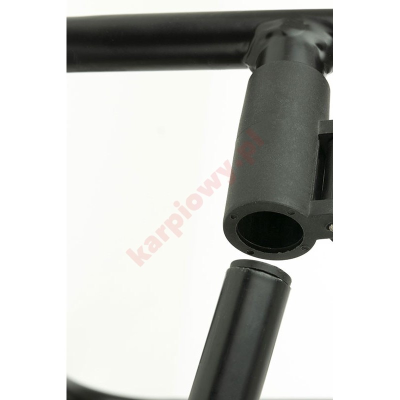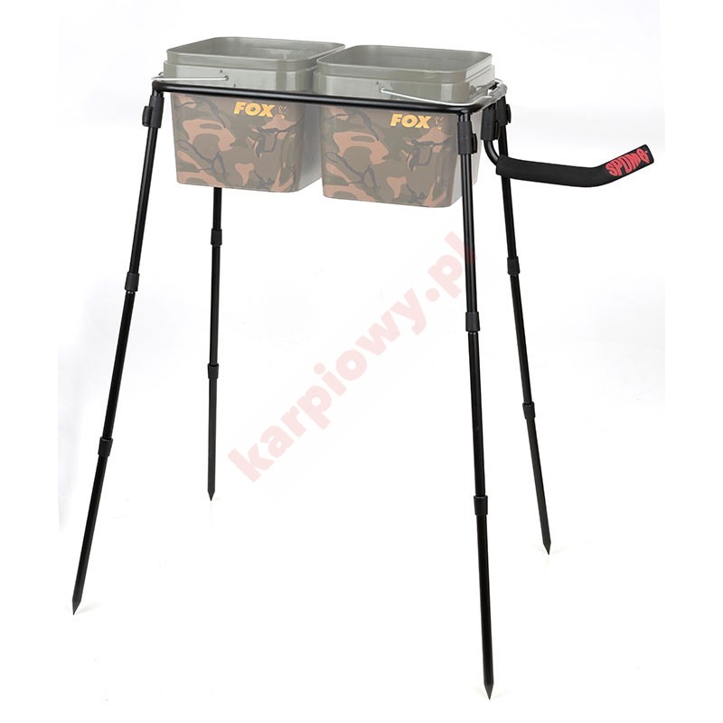 - Poręczna konstrukcja „all in one”, która utrzymuje dwa wiadra z przynętami na idealnej wysokości, przez co unikamy pochylania się podczas napełniania rakiet Spomb™ lub Fox Impact Spod™