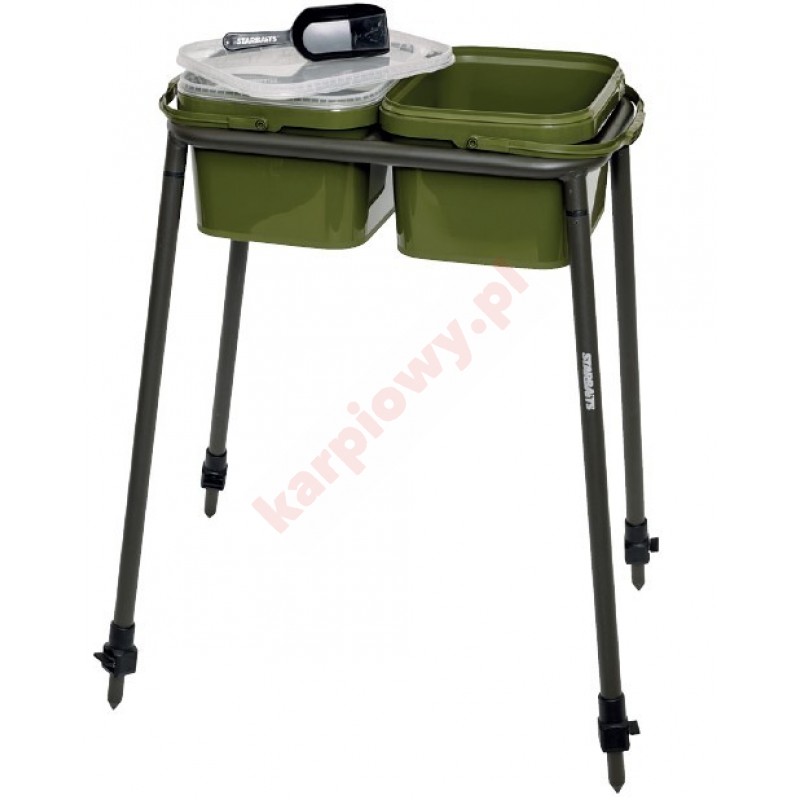 STB SQUARE BUCKET PLATFORM posiada dwie 8-litrowe, kwadratowe pojemniki STB. Platforma utrzymuje wiadra na wygodnej wysokości do nęcenia łyżką lub z procy. Podczas nęcenia nie musisz się pochylać ani odkładać sprzętu. Idealne do łowienia zestawami zig.