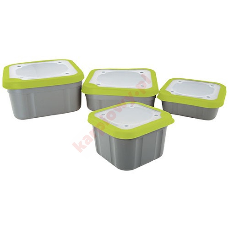 Te nowe, solidne pudełka na przynęty są wykonane z odpornego na wstrząsy tworzywa sztucznego i mają elastyczne, gumowe uszczelki, dzięki czemu idealnie pasują. Solidny wierzch zapobiega wchodzeniu lub wychodzeniu płynów, czyniąc je idealnymi do przechowywania wilgotnych przynęt, takich jak kukurydza cukrowa lub suchych produktów łatwo psujących się. Dostępne w 4 rozmiarach 1.1pt, 2.2pt, 3.3pt i 1ltr