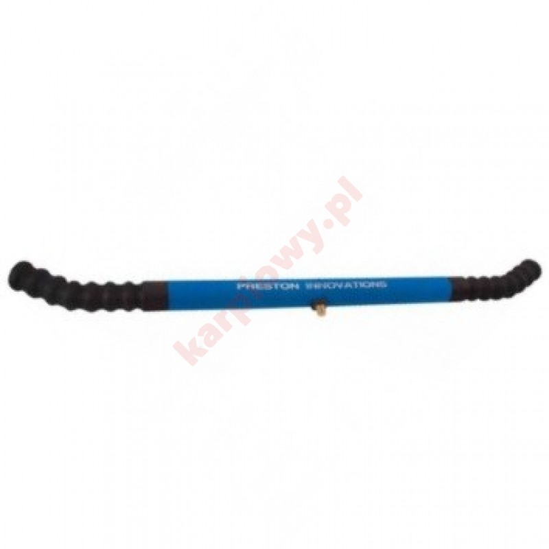 Podpórka Preston Deluxe Dutch Feeder Rest Standard w pełnym zestawie: podpórka na wędkę, gwint umożliwiający montaż pod kątem 90 stopni względem ramienia oraz nakrętka korygująca kąt.