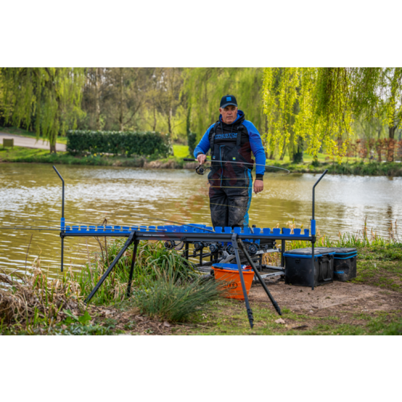 Wielofunkcyjna grzęda, zaprojektowana tak, aby pomieścić ogromną liczbę wędek lub zestawów górnych z dodatkową zaletą w postaci wbudowanych drążków dystansowych. Mierzone dokładnie na 2 m kije dystansowe pozwalają wędkarzowi dokładnie zmierzyć dystans bez konieczności wychodzenia z siedziska, są również idealne, gdy ukształtowanie terenu uniemożliwia korzystanie z tradycyjnych drążków dystansowych.