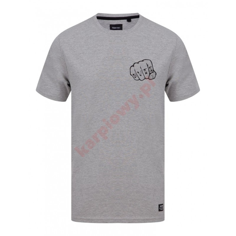 Uderzenie pięścią! Koszulkaz krótkim rękawem i dekoltem grey marle, z nadrukiem wytatuowanej pięści na piersi i naszym charakterystycznym logo na ramieniu.