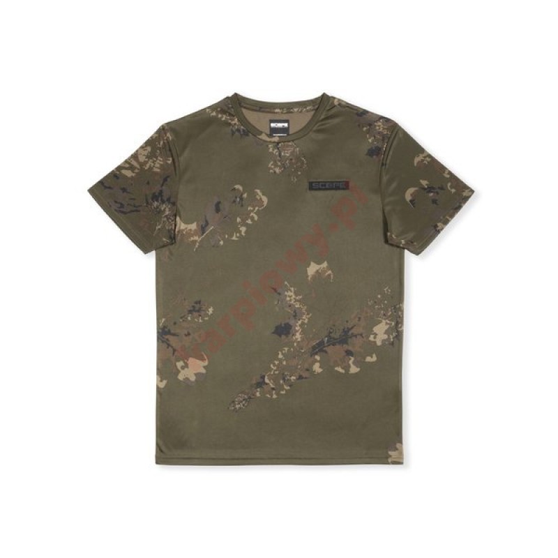Lekki, szybkoschnący i wygodny jak koszulki sportowe, t-shirt Scope OPS jest idealny do noszenia podczas upałów i wykończony jest wzorem Scope Camo.
