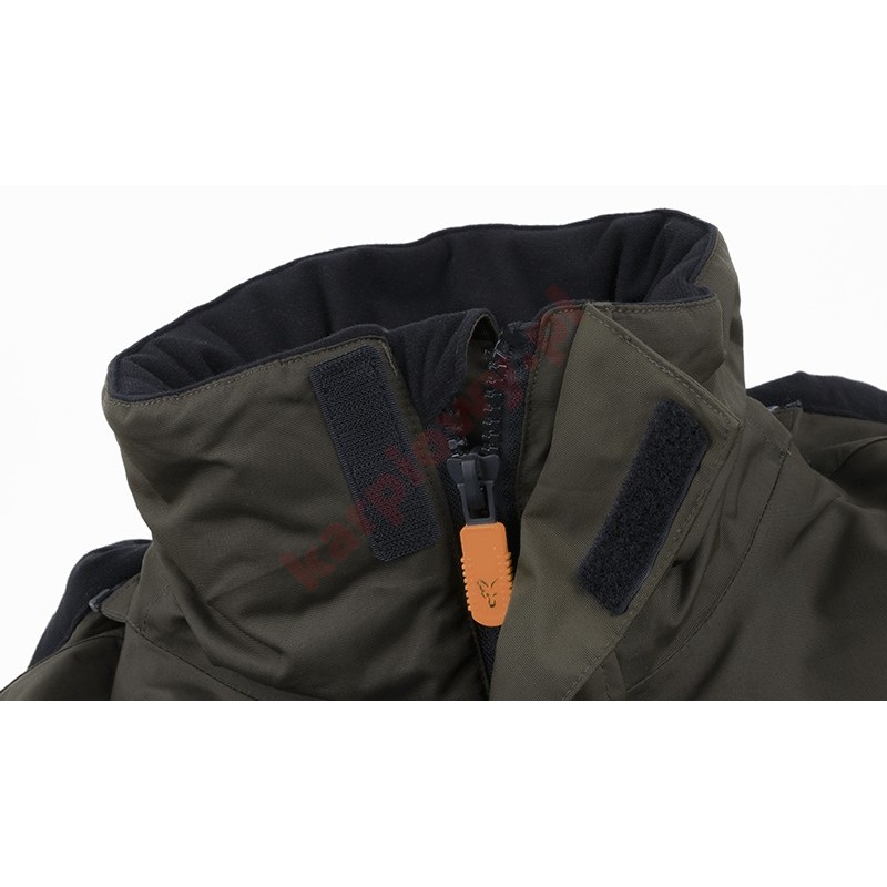 - Kurtka ma także wewnętrzną kieszeń na piersi zapinaną na zamek, neoprenowe wewnętrzne mankiety z otworem na kciuk oraz oznaczenia Foxa