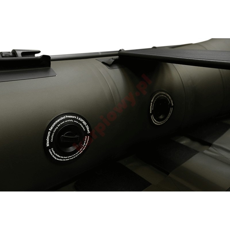 - W zestawie odporna na przetarcia podłoga pompowana (zielona dla pontonów zielonych i czarna dla pontonów camo)