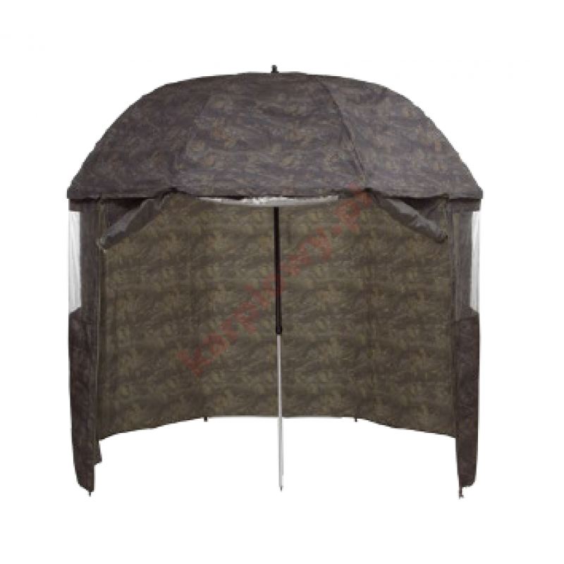 Parasol z boczną zasłoną i odczepianą przednią zasłoną (drzwiami). Wyposażony jest w jedno przednie i dwa boczne okna. Poszycie wykonane jest z lekkiego i w 100% wodoodpornego, gumowanego materiału, ze zgrzewanymi szwami i unikalnym wzorem kamuflażu. Wzmacniana sztyca zapewnia wyjątkową stabilność.