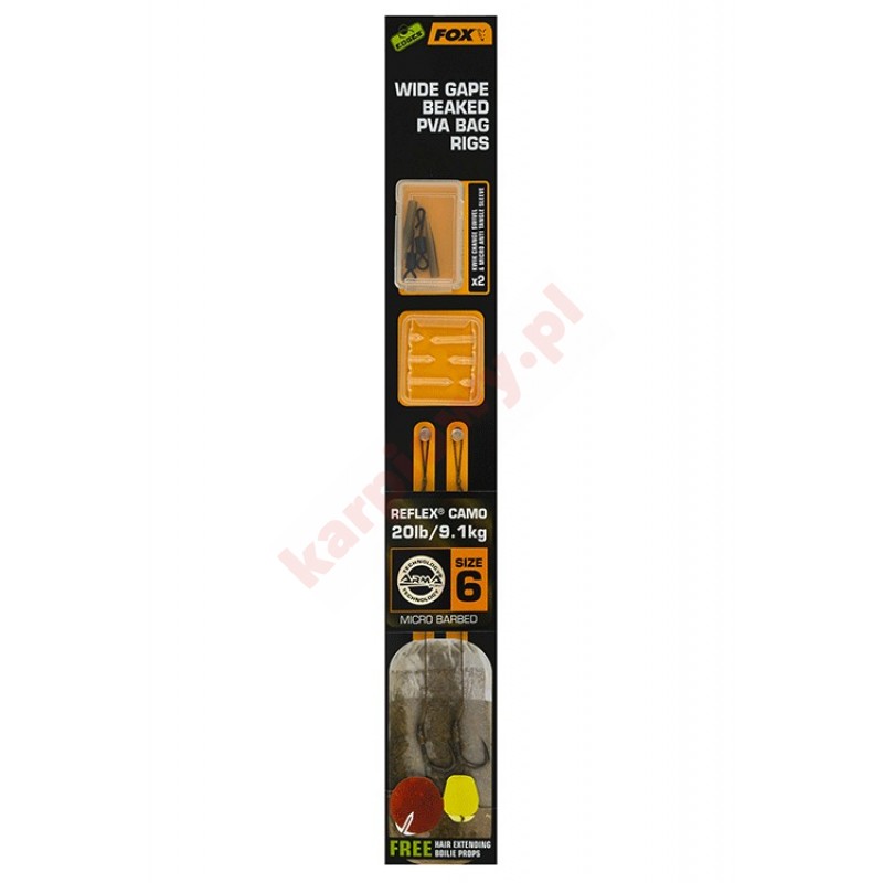 Gotowe przypony - Wide Gape Beaked PVA Rigs x2 20lb Size 6 Brown & Green
