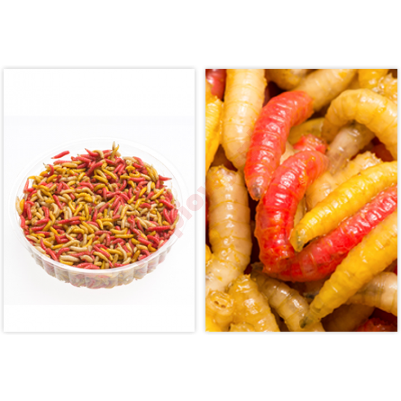 robak kolorowy – biały robak barwiony. Stosowany bezpośrednio na haczyk. Przynęta o dużej zawartości białka. Jej zapach i smak potrafi skutecznie zwabić większość ryb. |