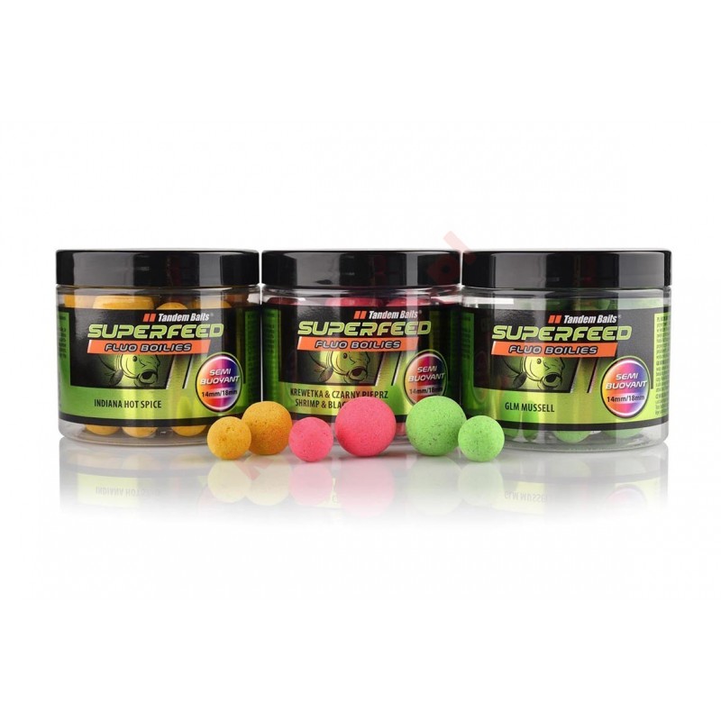 SUPERFEED FLUO SEMI BUOYANT BOILIES posiadają ekstremalnie widoczny kolor,tworzą wizualny sygnał przyciągający ryby. Wykonane z perfekcyjnie dobranej mieszanki najlepszych jakościowo składników: atraktorów, ekstraktów i aromatów. To neutralnie wybalansowane kulki, które niwelują wagę haczyka. Zestaw z taką przynętą zachowuje się w wodzie absolutnie naturalnie i nie płoszy ryb. To niezastąpiona przynęta w łowiskach o dużej presji wędkarskiej. Doskonale sprawdzi się w zbiornikach porośniętych podwodną roślinnością oraz z grubą warstwą mułu.