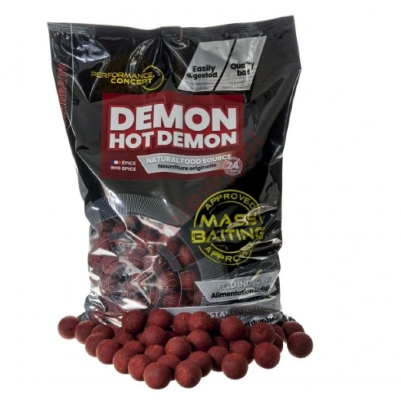 Starbaits Hot Demon można już spokojnie uznać za kulkę legendarną-stworzoną by sprostać wszystkim żywieniowym potrzebom karpi. Posiada najwyższy stopień naturalnych składników użytych do produkcji wraz z barwnikami nadającymi właściwy smak. Hot Demon udowodnił że przez długi czas wystarczająco absorbuje karpie szczególnie w zimowym okresie by zyskać miano doskonałej kulki na zimne wody. Przynęta jest bogata w łatwo trawienne składniki. Użyta do ich produkcji rybia melasa, oleje i rozdrobnione przyprawy są łatwo rozpuszczalne w wodzie o niskiej temperaturze.