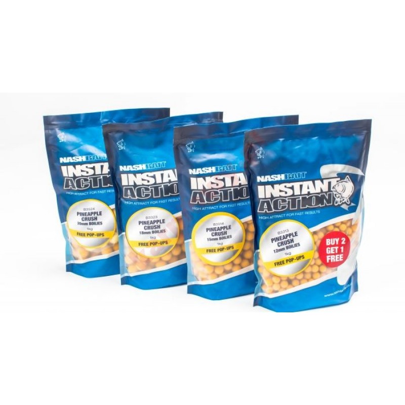 Kulki o zabójczo skutecznym aromacie ananasa i kwasu masłowego. Jedna z trzech nowych kombinacji zapachowych, które pojawiły się w szybko pracującej serii Instant Action. Całoroczny killer, za którego zapach odpowiada niezwykły aromat Pineapple Oil Palatant oraz kwas masłowy. Baza kulki jest łatwo strawna i szybko pracująca. Efektem kombinacji białego i żółtego barwnika, jest delikatny kolor, który nie wzbudza podejrzeń ryb.