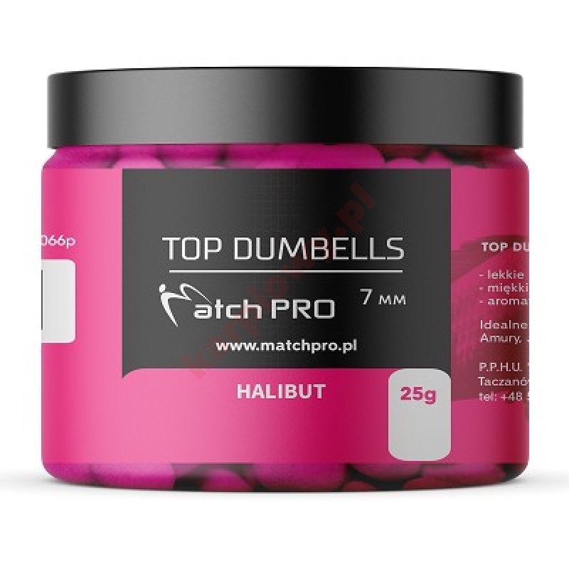 Seria najwyższej jakości przynęt o kształcie wałka (dumbells) w rozmiarze 7mm. Długie i intensywne testy tych przynęt pozwoliły dopracować ich skład i właściwości tak aby były bardzo skuteczne w każdych warunkach. To co wyróżnia Matchpro top dumbells to idealna miękkość, dzięki której ryby pewnie ją pobierają. Wyjątkowa lekkość przynęty zapewnia bardzo naturalne zachowanie się w wodzie co niezwykle podnosi skuteczność łowienia. Top Matchpro Dumbells są bardzo aromatyczne, oddając przez długi czas równomiernie aromat w wodzie co przekłada się na dużą ilość brań. Różnorodność smaków i kolorów pozwala dopasować się każdemu wędkarzowi do aktualnych warunków panujących na łowisku.