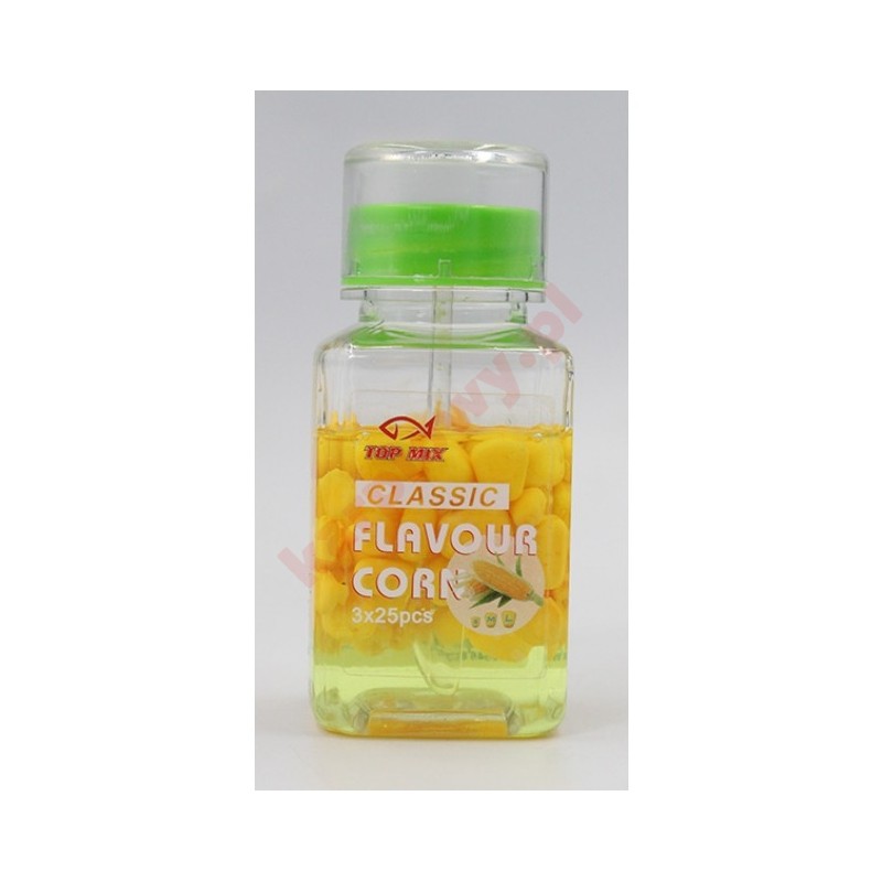 TOP MIX Imitacja kukurydzy MagicCorn (kukurydza kauczukowa) ma właściwości, które sprawiają, że łowienie nią jest niebywale skuteczne . Zwodnicze podobieństwo do prawdziwej kukurydzy w puszkach, doskonała pływalność i intensywny smak charakteryzują ten produkt jako idealny. Smak i aromat są niepowtarzalne, dodatkowo znajduje się w praktycznym słoiczku, z którego przy pomocy małej łyżeczki można wyjąć 3 x 25 sztuk ziaren kukurydzy. Nie powoduje to zanieczyszczenia ziaren w butelce ani aromatu. W słoiku znajdują się 3 rozmiary ziaren kukurydzy, średni rozmiar ( M ) to zwykły rozmiar kukurydzy w puszce, większy rozmiar ( L ) może być użyty gdy ryby dobrze reagują na większą przynętę , a mały ( S ) to prawdziwy rozmiar zawodów, którego używamy, gdy chcemy łowić ryby, niezależnie od wielkości. Najbardziej praktycznym i trwałym sposobem na prezentacje tej przynęty jest TOP MIX Bait Spike lub Fine Bait Spike. Używając go, możesz złapać na jedną przynętę nawet dziesiątki ryb, jeśli jej nie zgubisz. Jeśli potrzebujemy jeszcze większej przynęty, możemy przypiąć dwa ziarna przynęty do odpowiedniego rozmiaru. Pod koniec łowienia wskazane jest ponowne włożenie przynęty do słoiczka w celu ponownego napełnienia, wchłaniając niepowtarzalny aromat. Więc mały słoiczek może wystarczyć nawet na sezon! Szczególnie nadaje się do method feeder z koszyczkiem zanętowym, gdzie możemy w pełni wykorzystać wszystkie zalety MagicCorn. Elastyczna, mocna przynęta, której dodatkową zaletą jest to, że nie jest podatna na zgniecenie i nie zostanie wyssana przez małe ryby. Jest sprzedawana w sześciu zwycięskich smakach (słodka kukurydza, miód, truskawka, ananas, czosnek, czekolada-pomarańcza).