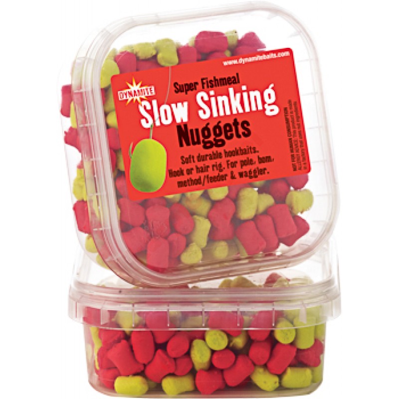 Nuggetsy to kolorowa przynęta o unikalnej i bardzo trwałej sprężystej konsystencji, dzięki której można nakładać ją na haczyk, włos lub gumki. Wyprodukowane na bazie wysokogatunkowej mączki rybnej z dodatkiem rozpuszczalnych aminokwasów, które zachęcają ryby do szybkiego żerowania. Dostępne w wersji tonącej i pływającej. W jednym opakowaniu znajdują sie dwa kolory nuggetsów.