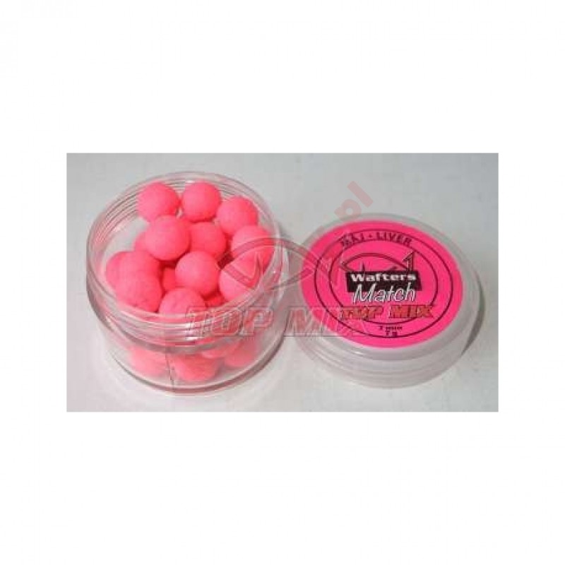 TOP MIX Match Wafters to mała przynęta haczykowa (7 mm), która jak sama nazwa wskazuje wafters, doskonale równoważy haczyk. Sekret skuteczności lekkich, pływających przynęt polega na tym, że nie zapadają się w mule, nie znikają w roślinności wodnej i wnikają do pyska ryby przy minimalnym zasysaniu. Przynęta wafters delikatnie się unosi jednak jej pływalność jest tak niska ze nawet haczyk rozmiar 14 pozostanie na dnie koszyka, a karp może łatwo wessać całość. Wafters Match TOP MIX są elastyczne i bardzo wolno się rozpuszczają, mają specyficzną fakturę. Ich smaki i kolory są niebywale atrakcyjne dla karpi i innych ryb.